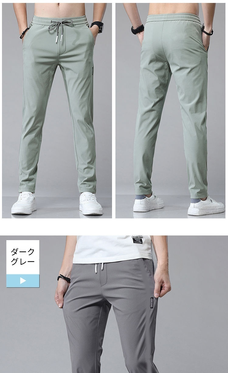 メンズ ロングパンツ 夏服 冷感パンツ アイスシルクパンツ 接触冷感 薄手 涼しい イージーパンツ ストレッチ 夏 春 秋