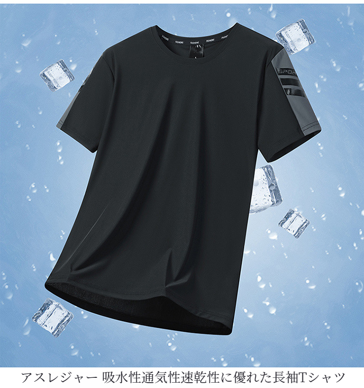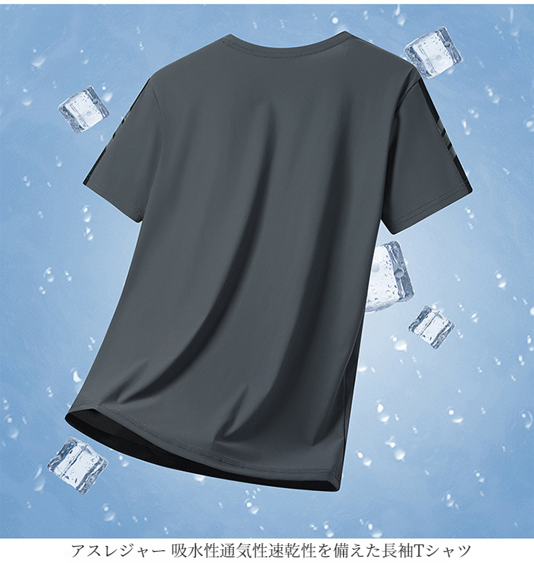 メンズ半袖Tシャツ 速乾通気性アイスシルクストレッチカジュアルトップライトボトム半袖Tシャツ